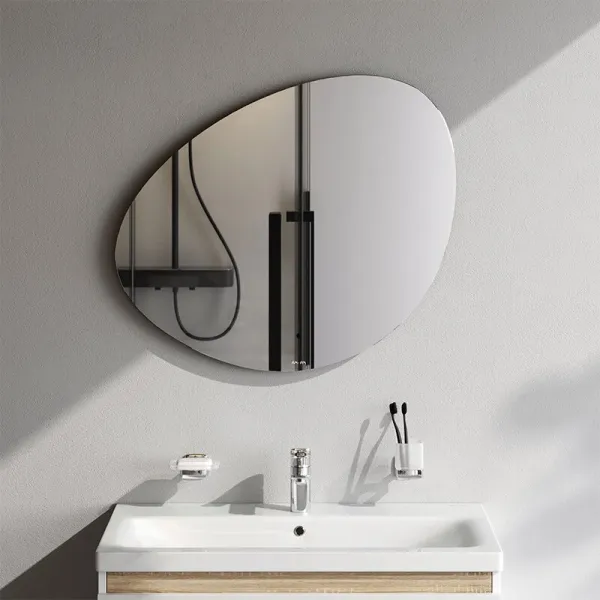 Край зеркального полотна обработан еврокромкой что обеспечивает надежную защиту от случайных порезов при контакте с изделием.