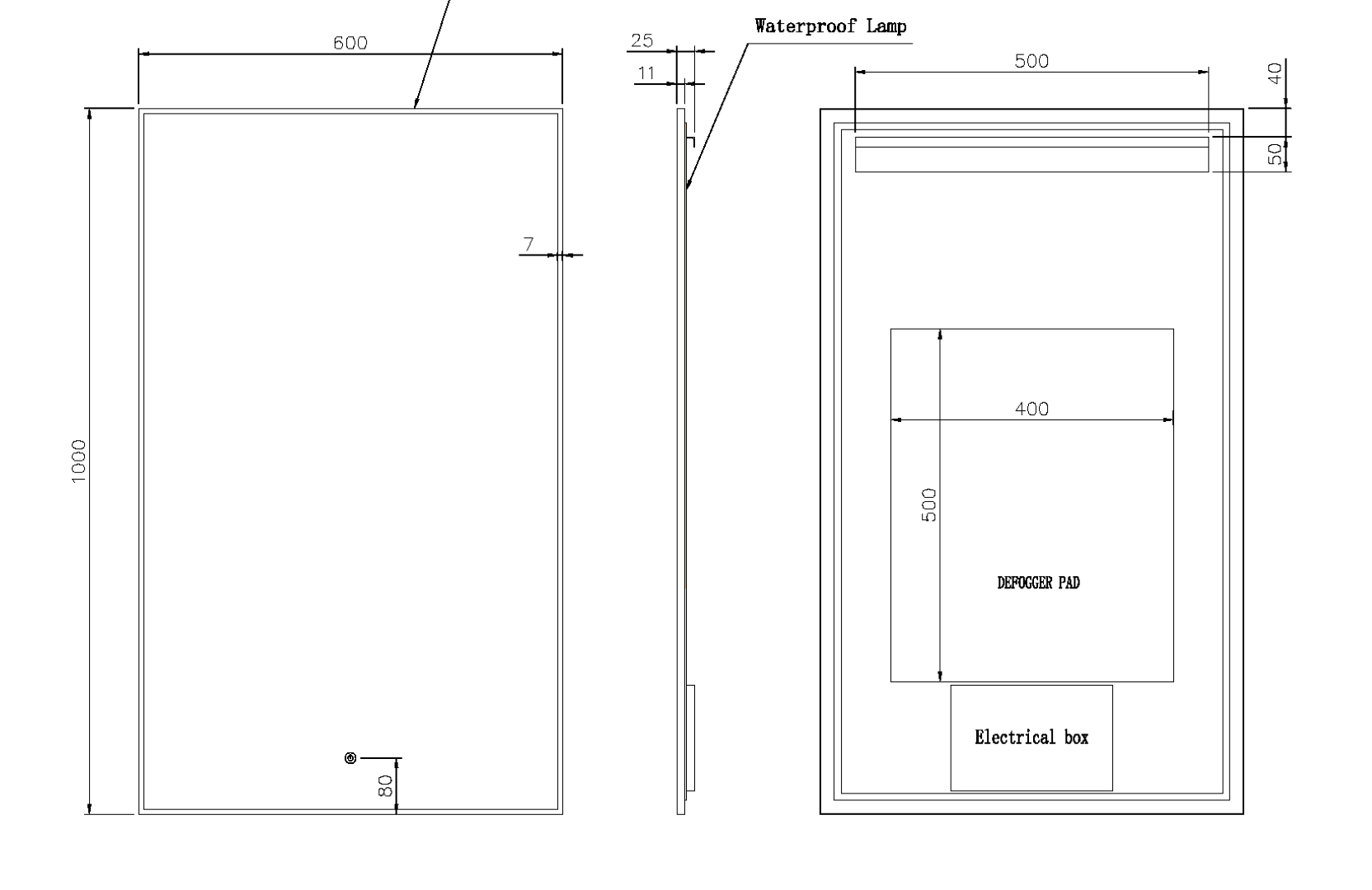 Размерный ряд от 80см до 140см. Каждое зеркало оборудовано тыльной подсветкой