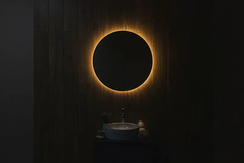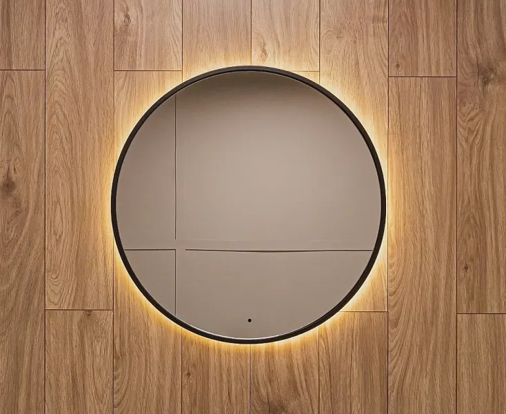 Ореольная подсветка подчеркивает форму зеркала и создает эффект парения.