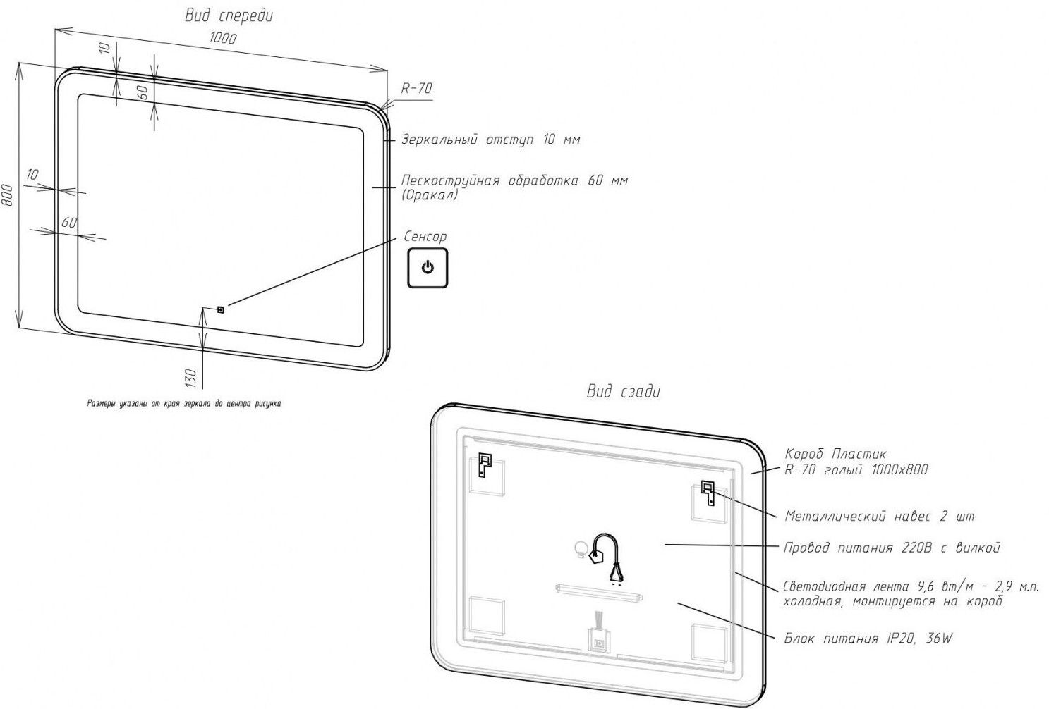 • Толщина зеркального отступа: 10 мм