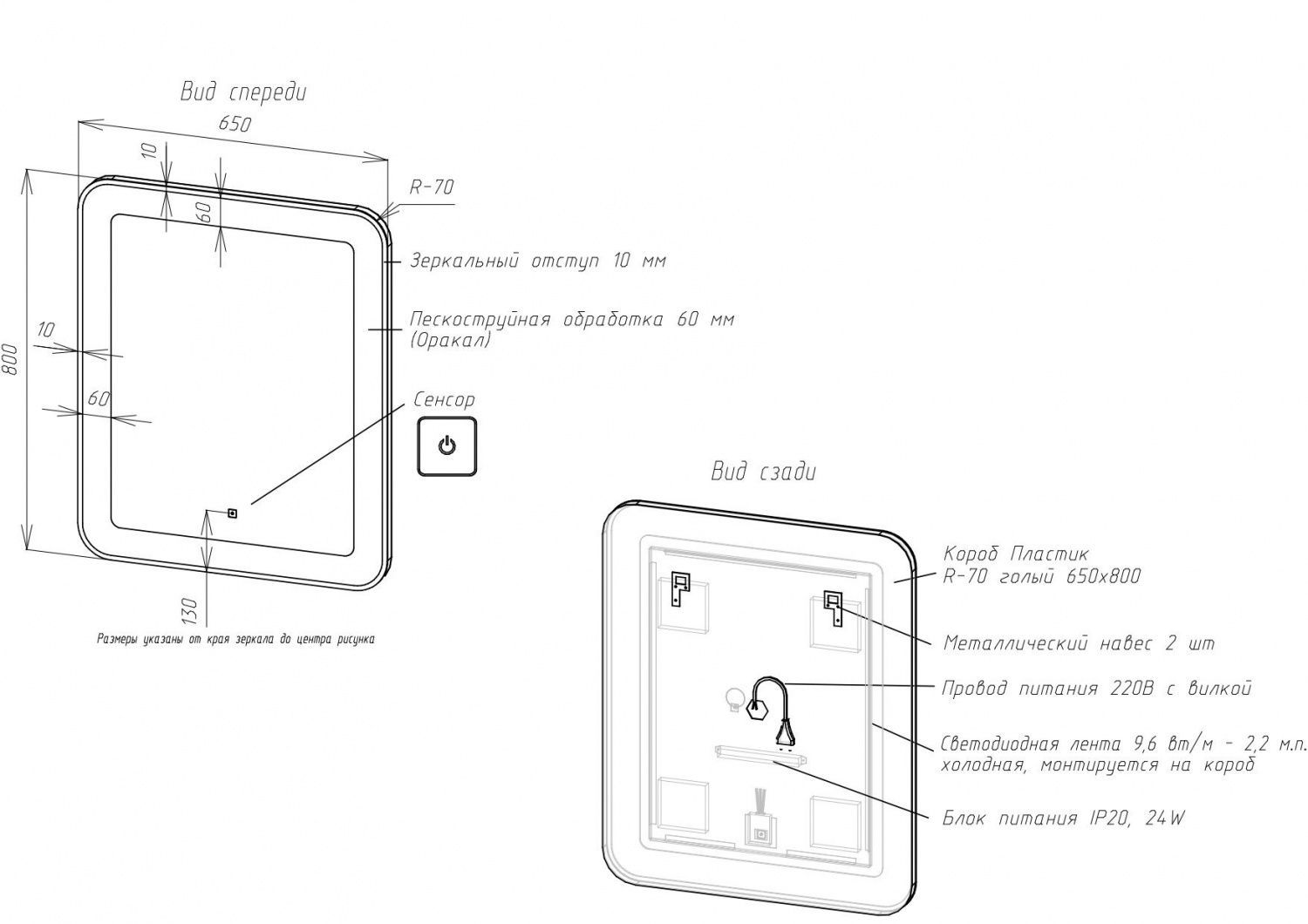 Зеркало с подсветкой Art&Max Latina 65x80см AM-Lat-650-800-DS-F