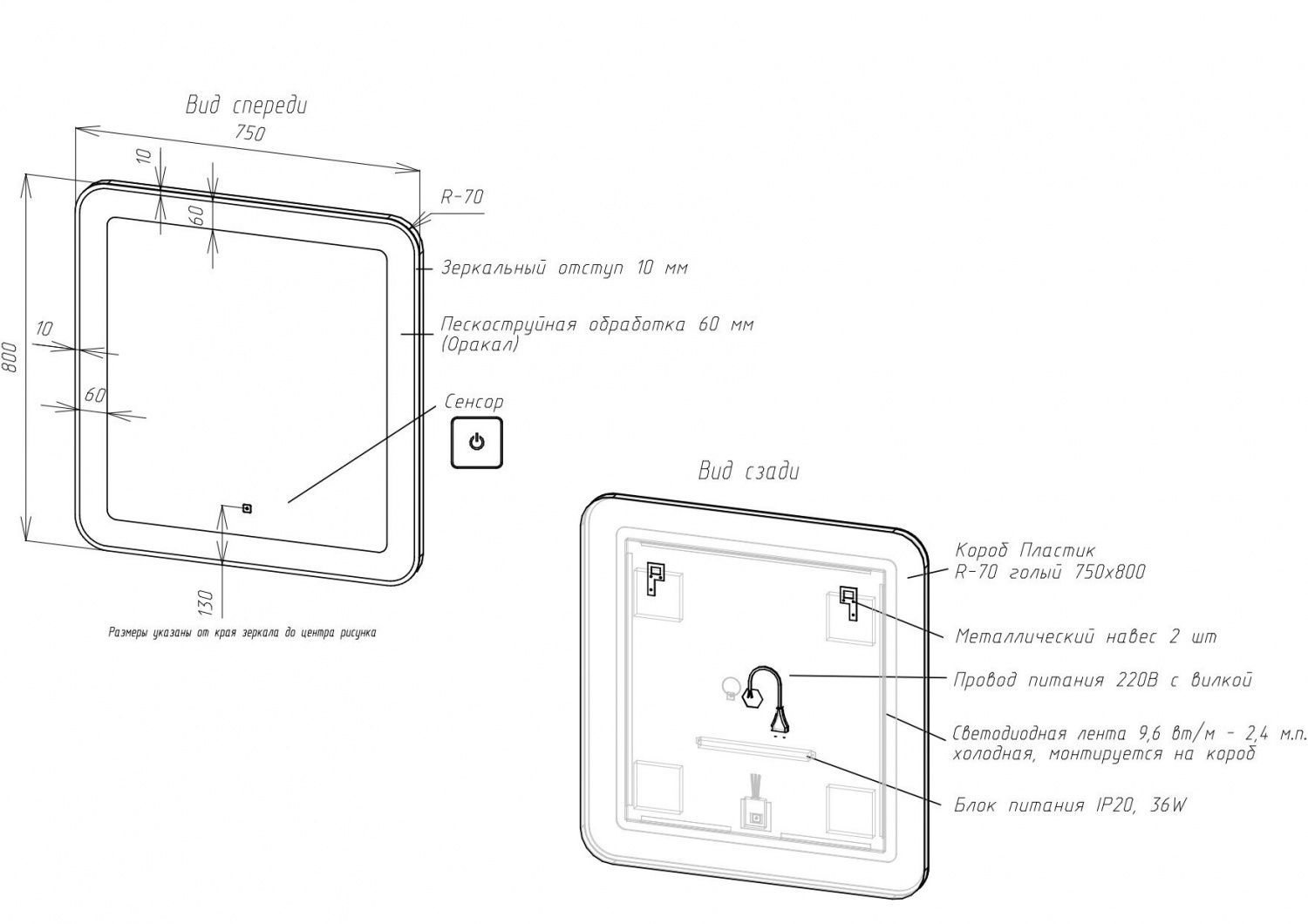 - Толщина зеркального отступа: 10 мм