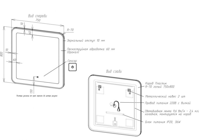 - Толщина светодиодной рамки: 60 мм
