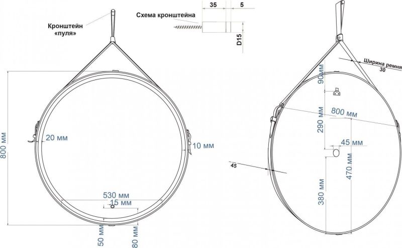 Зеркало Art&Max выполнено в современном стиле и отлично дополнит интерьер любой ванной комнаты. Благодаря подвесной конструкции модель не занимает много места, что позволяет экономить пространство в небольшой ванной комнате. Модель оснащена ремнем и встроенной светодиодной LED подсветкой с диммером. Ремень выполнен из натуральной кожи белого цвета.В комплект поставки входит крепеж и ремень.Особенности: