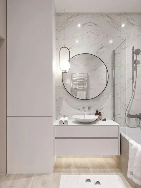 Зеркало, оснащенное открытой ореольной светодиодной LED подсветкой с диммером .