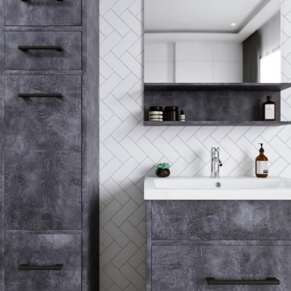 Его чистые линии и сдержанная форма создают гармоничный контраст с отделкой стен и сантехникой, добавляя комнате ощущение простоты и элегантности.