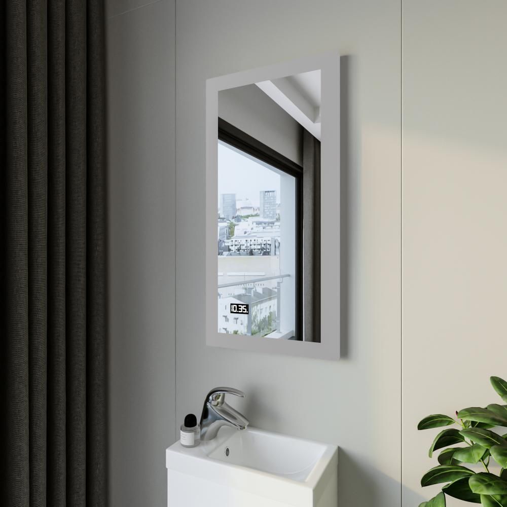 Зеркало с подсветкой Бриклаер Вега 4627125414190 с часами 40 см на взмах руки купить