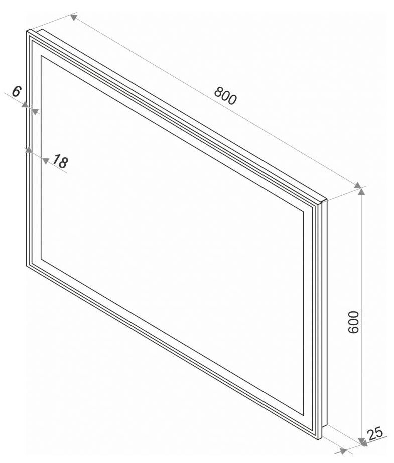Зеркало "Aralia Led" 800х600LED подсветка 6000Ксенсорный выключатель с функцией димированияалюминиевый профиль серого цвета