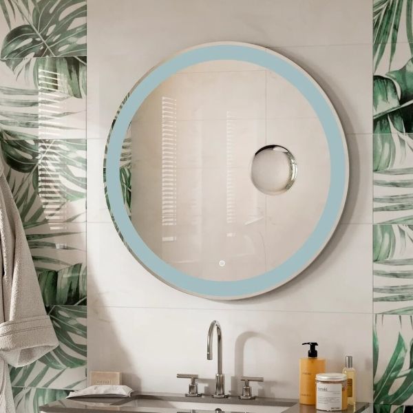 Зеркало "Aroma Led" d 780 с увеличительным зеркаломLED подсветка 6000Ксенсорный выключатель с функцией димированиявстроенное увеличительное зеркало (линза) с 3-х кратным увеличением