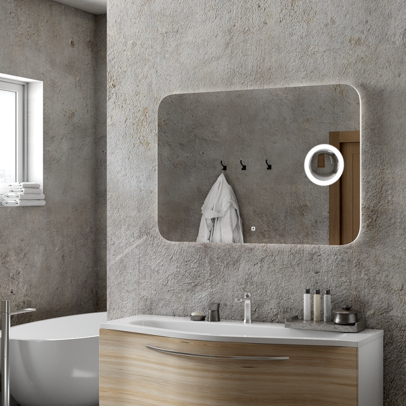 Зеркало "Elegant Led" 1000х700ореольная LED подсветка 6000Ксенсорный выключатель с функцией димированиявстроенное увеличительное зеркало (линза) с 3-х кратным увеличениемдополнительная подсветка вокруг линзы