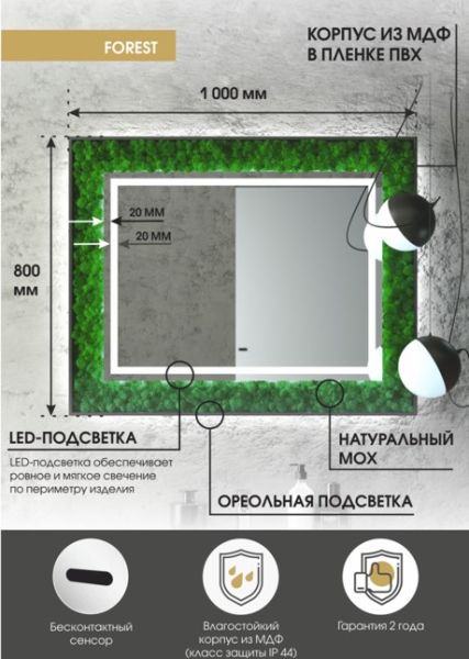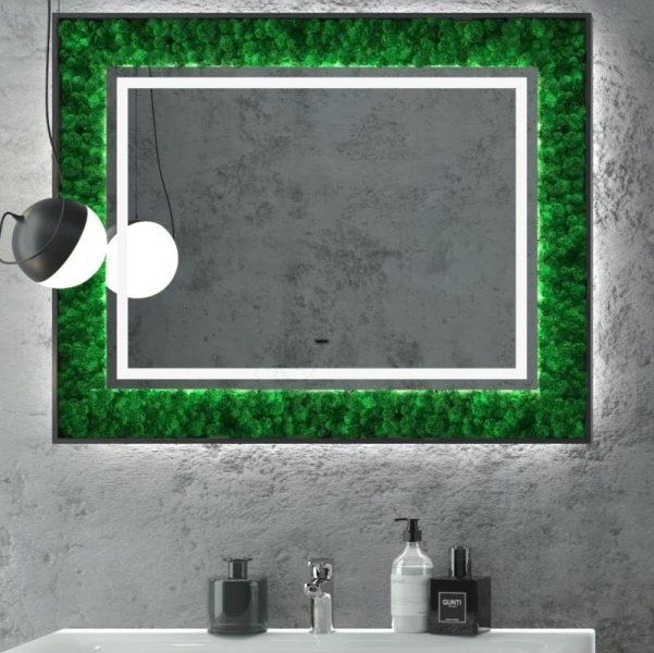 Зеркало "Forest Led" 1000х800 с бесконтактным сенсоромLED подсветка 6000Кбесконтактный сенсор с функцией димированиядекоративный мох