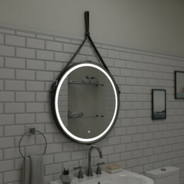 Зеркало "Millenium Black Led" D 800 на ремне из натуральной кожи черного цветаLED подсветка 6000Ксенсорный выключатель с функцией димированияремень из натуркожи черного цвета