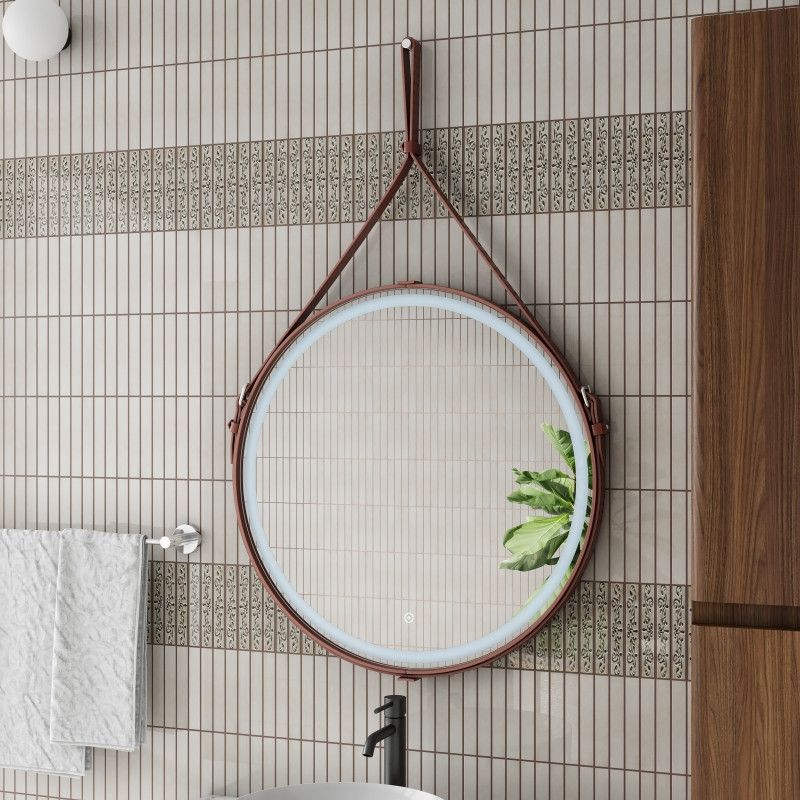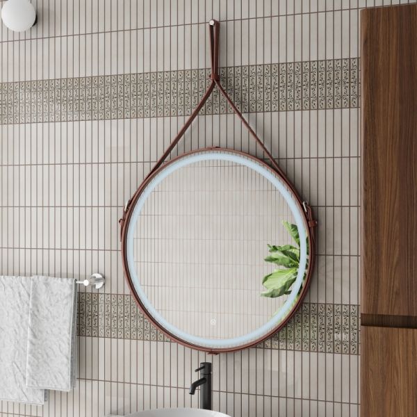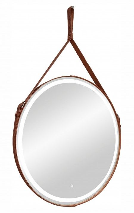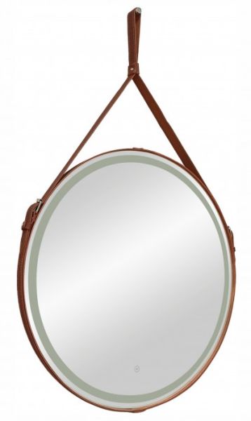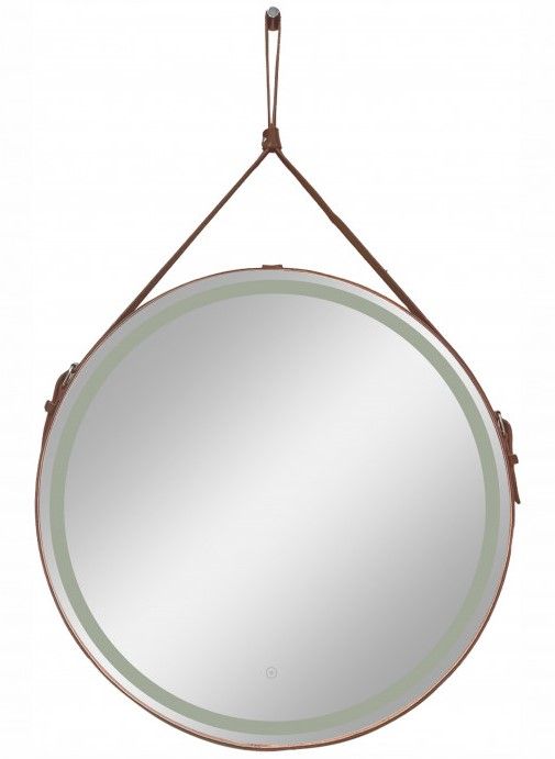 Зеркало "Millenium Brown Led" D 800 на ремне из натуральной кожи коричневого цветаLED подсветка 6000Ксенсорный выключатель с функцией димированияремень из натуркожи коричневого цвета