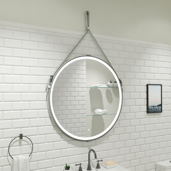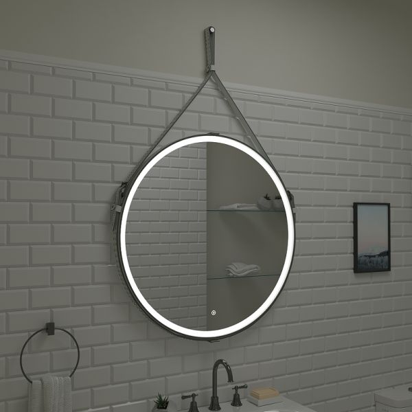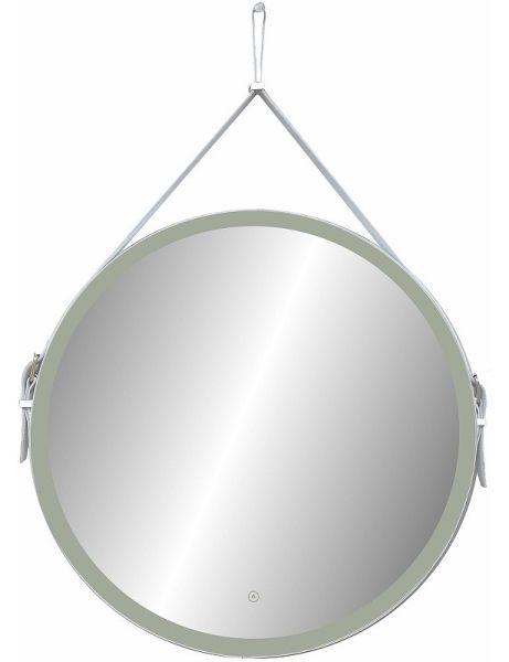 Зеркало "Millenium White Led" D 650 на ремне из натуральной кожи белого цветаLED подсветка 6000Ксенсорный выключатель с функцией димированияремень из натуркожи белого цвета