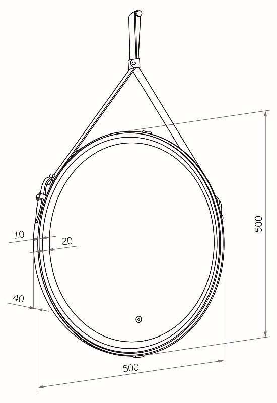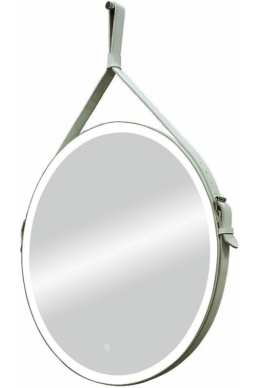 Зеркало "Millenium White Led" D 500 на ремне из натуральной кожи белого цветаLED подсветка 6000Ксенсорный выключатель с функцией димированияремень из натуркожи белого цвета
