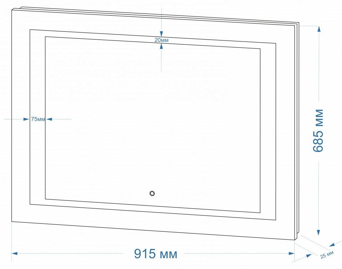 Зеркало "Quattro Led" 900х700LED подсветка 6000Ксенсорный выключатель с функцией димирования