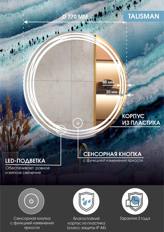 Зеркало "Talisman Led" d 770LED подсветка 6000Ксенсорный выключатель с функцией димирования