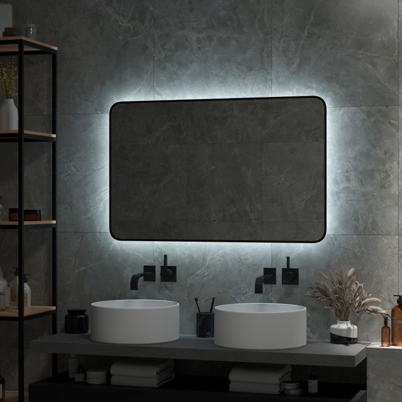 Зеркало "Torry Led" с фоновой подсветкой, бесконтактным сенсором, черной окантовкой 1200х700LED подсветка 6000К;бесконтактный сенсор с функцией димирования;открытая ореольная подсветка.