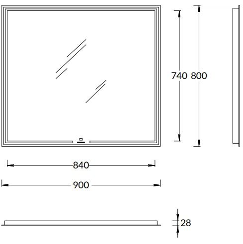 Зеркало MiO выполнено с деликатной подсветкой по периметру. Светодиодная подсветка включается одним прикосновением к сенсору в нижней части зеркального полотна, там же нанесён логотип KERAMA MARAZZI. Имеется встроенный диммер.
