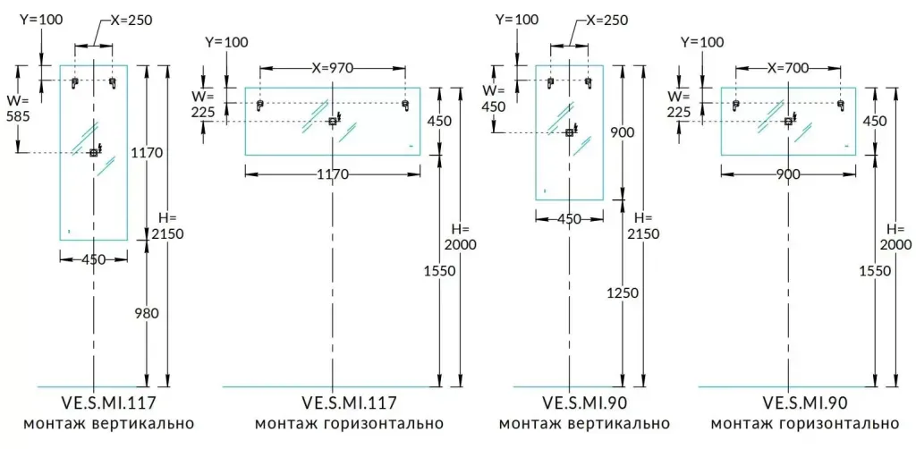 Прямоугольные зеркала VETRATA S представлены в размерах 45×90 и 45×117см. Каждое зеркало имеет три режима интерьерной подсветки: её температуру можно менять бесконтактно, простым взмахом руки. Также зеркала оснащены диммером, регулирующим интенсивность свечения, и функцией  антизапотевание. Допустимо горизонтальное и вертикальное расположение зеркала, для этого предусмотрены три точки крепления. Кроме того, можно использовать два вертикальных зеркала одновременно с тумбами шириной 120 см.