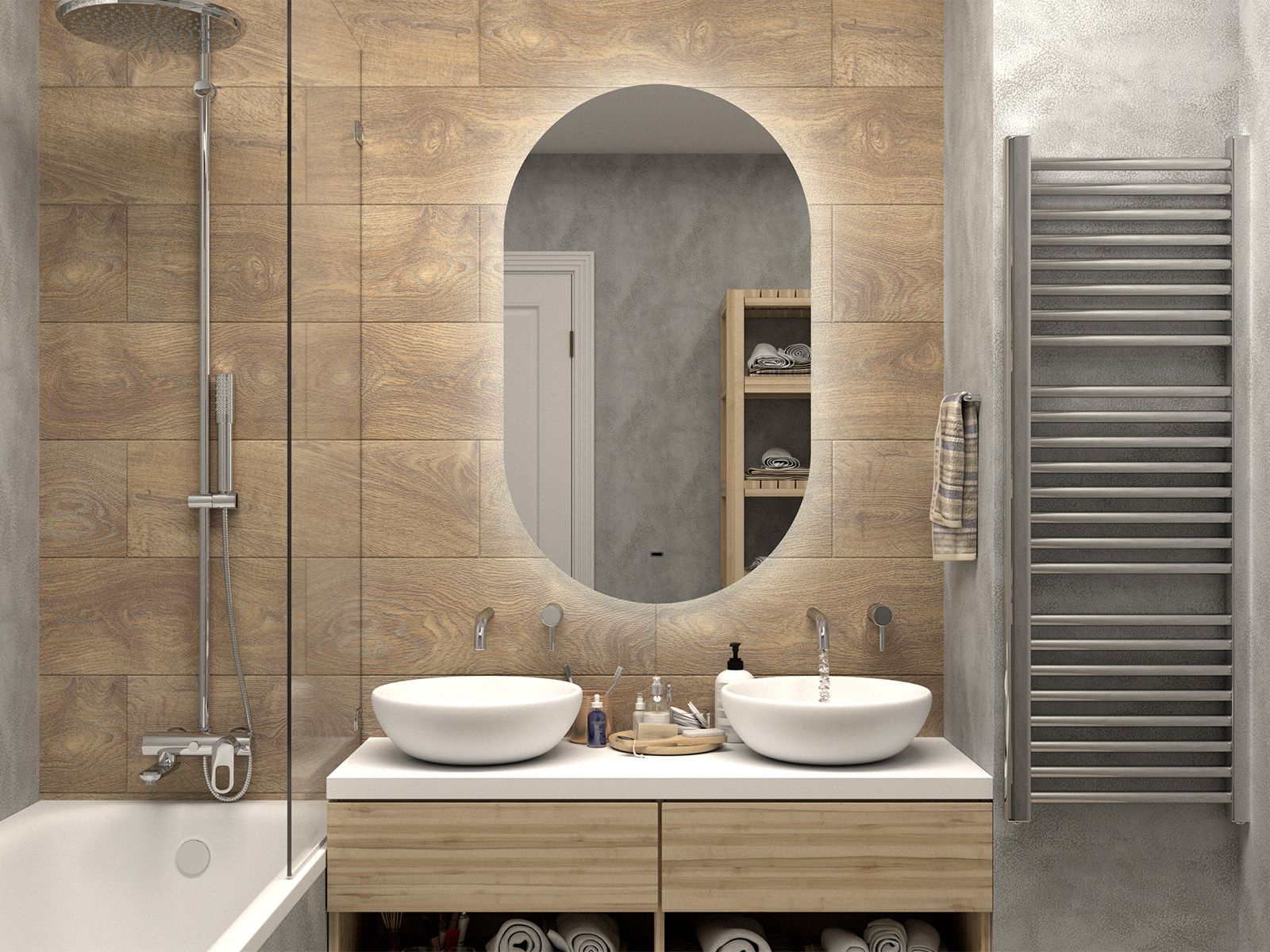 Зеркало с подсветкой для ванной комнаты — это элемент интерьера, который сочетает в себе функции, эстетику и современный дизайн. Его изящная форма и тонкие линии легко вливаются в любое пространство, создавая атмосферу утонченности и уюта.Интегрированная светодиодная подсветка обрамляет зеркало, даря мягкий, рассеянный свет, который не только позволяет удобно наносить макияж, но и наполняет ванную комнату теплом и позитивной энергией.Классический дизайн позволяет использовать его в различных стилях – от минимализма до современного эклектичного оформления. Оно прекрасно вписывается в любую цветовую гамму, будь то нейтральные тона или более яркие акценты.