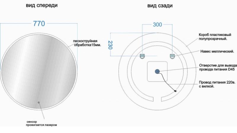 Тип:зеркало с подсветкой