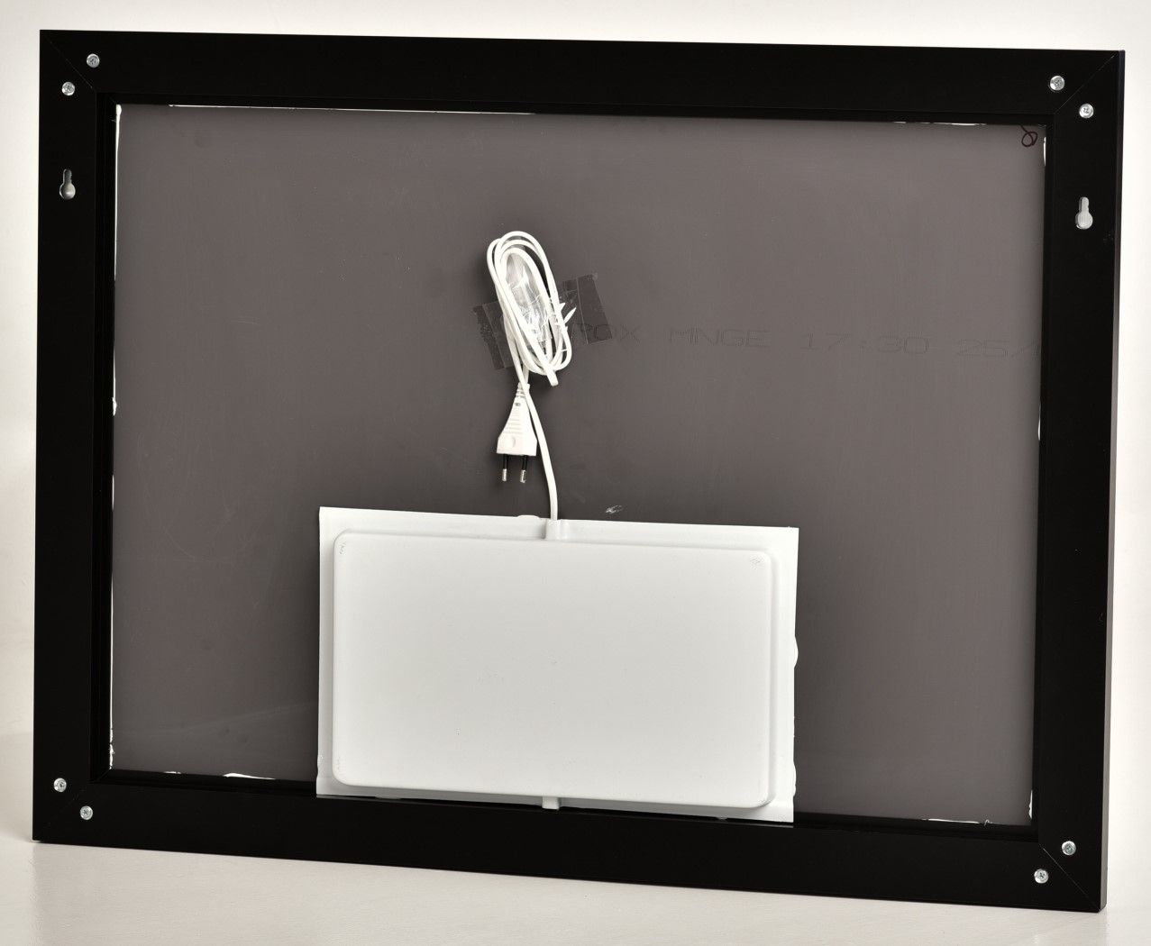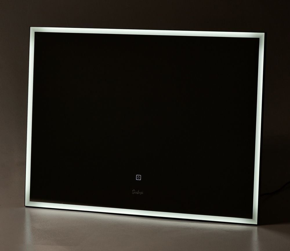 Зеркало ARMADIO BLACK 100, 1000х700 с подсветкой. Алюминиевым профилем и сенсорным выключателем. Потребляемая мощность 29 W. Класс защиты IP44. Стеклянное зеркальное полотно Mirox производства компании AGC Glass Russia, принадлежащей международной группе мирового лидера по производству стекла AGC Inc. LED подсветка, алюминиевый профиль, сенсорный выключатель, блок питания, крепление зеркала (кронштейн с крюком), клеммник, сетевой шнур. Материал корпуса - Анодированный алюминий (профиль), задняя стенка пластик (АБС). Можно использовать в любом помещение: ванная и туалет, прихожая, спальня, гостиная.