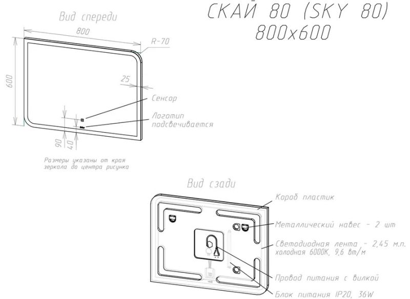 Зеркало нестенное SKY 80, 800х600 с LED подсветкой и сенсорным выключателем. Класс защиты IP44. Стеклянное зеркальное полотно Mirox производства компании AGC Glass Russia, принадлежащей международной группе мирового лидера по производству стекла AGC Inc. Можно использовать в любом помещение: ванная и туалет, прихожая, спальня, гостиная