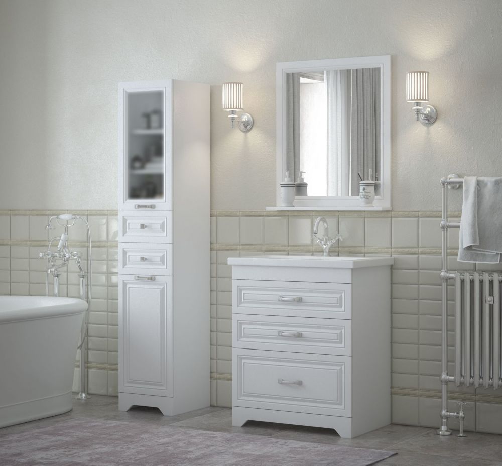 Зеркало не только великолепное украшение для ванной комнаты, но и восхитительное функциональное решение любого санузла.В производстве используют только качественные влагостойкие материалы, в составе которых полностью отсутствуют опасные вещества. Коллекция выполнена в эксклюзивном дизайнерском решении в лучших традициях. Белый, основной цвет исполнения, безупречно впишется в любой дизайн проект. Зеркало оснащено подсветкой, позволяющей комфортно провести утренние процедуры.Зеркало создаст уют и комфорт в любом дизайнерском решении, и ванная комната обретет неповторимый элемент интерьера.У зеркала "Каролина 70" на задник приклеено шлифованное зеркальное полотно. Снизу есть полка. Задник и полка - МДФ с матовой плёнкой ПВХ. Сзади есть подвесы.
