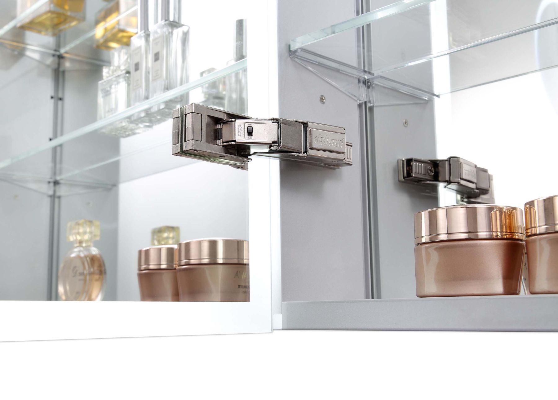Петли BLUM с доводчиком и углом открывания на 95 градусов обеспечивают плавное и бесшумное открытие дверей, что делает использование шкафа комфортным на протяжении всего срока эксплуатации. Зеркальный шкаф для ванной выполнен из влагостойких и прочных материалов, что гарантирует его долговечность и устойчивость к воздействию влаги в ванной комнате.