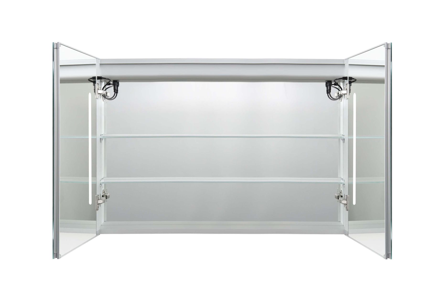 Габариты (Д В Ш), мм: 1000*700*133Алюминиевый зеркальный шкаф с подсветкойФорма: прямоугольнаяМонтаж: подвесной, монтируется на поверхность или в нишуДве зеркальные дверцы шириной 49,85см. Двусторонние зеркальные двери и зеркальные боковиныДве стеклянные полки 8 мм.Материал: алюминийЦвет: хромЗеркальный салонКруговая подсветка SMD 2835-120P, цветовая температура 2500K/6500KФункция антизапотевания2 режима переключения света/ цветаСенсорное управлениеС механизмом доводчика, обеспечивающим плавное закрываниеМебель поставляется в собранном видеДополнительное оснащение зеркала: подвесыГарантия: 1 год