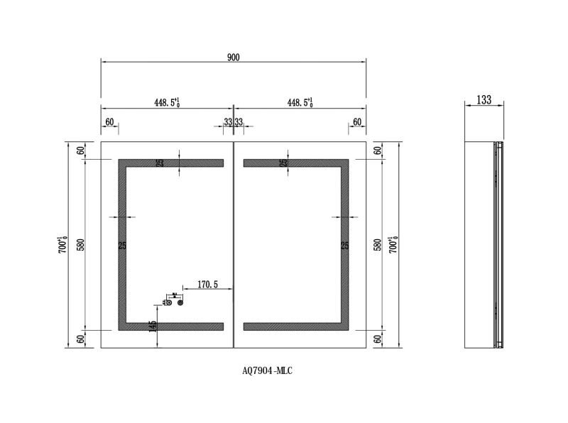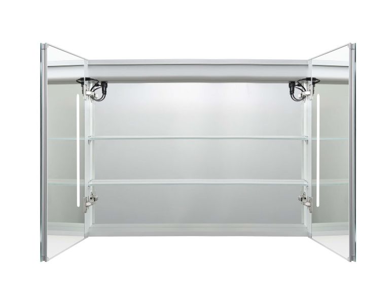 Габариты (Д В Ш), мм: 900*700*133Алюминиевый зеркальный шкаф с подсветкойФорма: прямоугольнаяМонтаж: подвесной, монтируется на поверхность или в нишуДве зеркальные дверцы шириной 44,85см. Двусторонние зеркальные двери и зеркальные боковиныДве стеклянные полки 8 мм.Материал: алюминийЦвет: хромЗеркальный салонКруговая подсветка SMD 2835-120P, цветовая температура 2500K/6500KФункция антизапотевания2 режима переключения света/ цветаСенсорное управлениеС механизмом доводчика, обеспечивающим плавное закрываниеМебель поставляется в собранном видеДополнительное оснащение зеркала: подвесыГарантия: 1 год