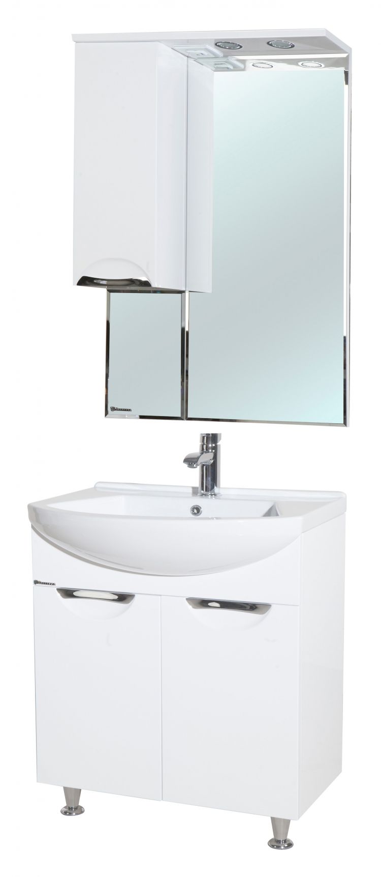 В производстве используют только качественные влагостойкие материалы (ВЛДСП), в составе которых полностью отсутствуют опасные вещества. Данная серия выполнена в эксклюзивном дизайнерском решении в лучших традициях современного стиля. Белый, основной цвет исполнения Bellezza, гармонирующий с большинством интерьерных решений. Шкаф-зеркало предусматривает удобную и вместительную систему хранения. Зеркало Bellezza оснащено галогеновой подсветкой, позволяющей комфортно провести утренние процедуры.