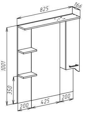 Вместительная организация: Просторный правосторонний шкаф с продуманной внутренней компоновкой позволяет удобно разместить косметику, средства гигиены и аптечные принадлежности, сохраняя идеальный порядок.