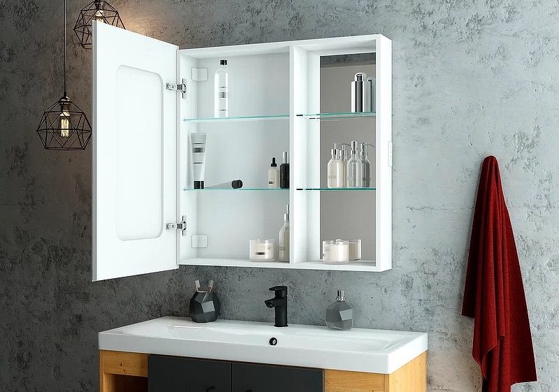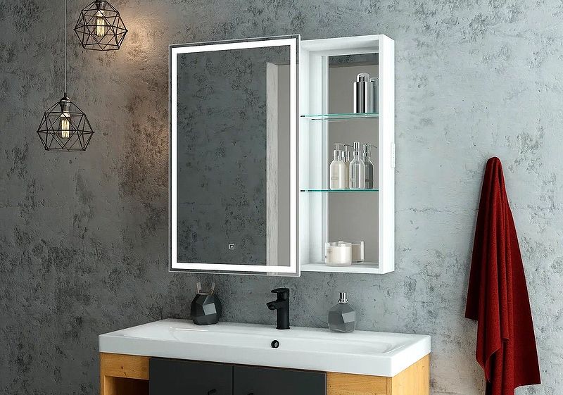 Зеркало-шкаф "Aperio LED" 800х800 левый с розеткойLED подсветка 6000К; сенсорный включатель с функцией димирования, Материал корпуса- МДФ, пленка ПВХ
