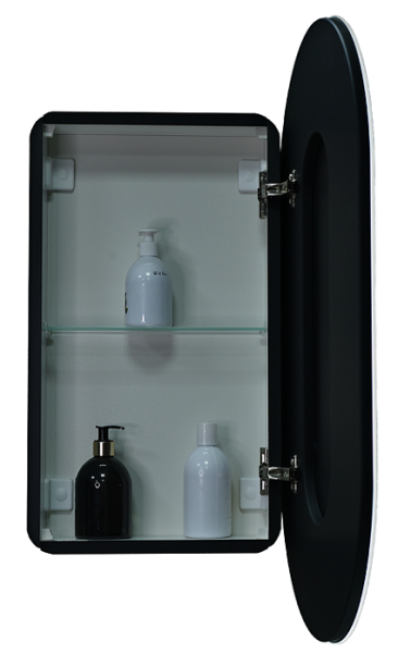 Зеркало-шкаф "Elmage black LED" 450х800LED подсветка 6000К; датчик движения, материал корпуса - МДФ, цвет корпуса - черный, розетка на корпусе, реверсивные крепления