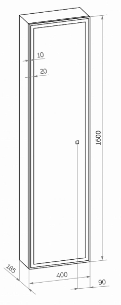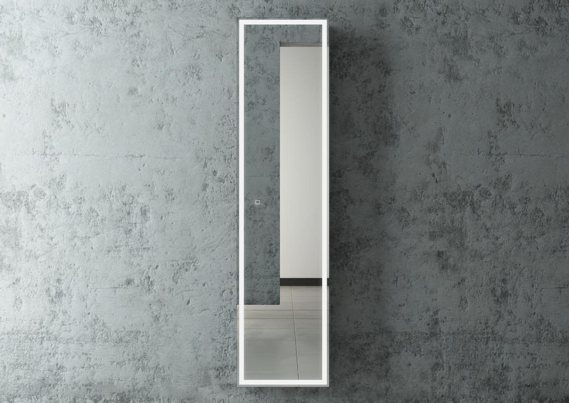 Зеркало-шкаф "Mirror Box black Led" 400х1600LED подсветка 6000К;сенсорный включатель с функцией димирования, материал корпуса - МДФ пленка ПВХ с эффектом Soft touch, цвет корпуса - черный,реверсивные крепления