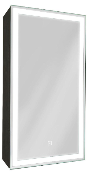 Зеркало-шкаф "Mirror Box black Led" 350х650 левый LED подсветка 6000К; сенсорный включатель с функцией димирования, материал корпуса - МДФ, пленка ПВХ с эффектом Soft touch, цвет корпуса - черный