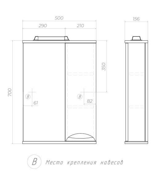 Левое/правое исполнение шкафчика; 2 полки ЛДСП;