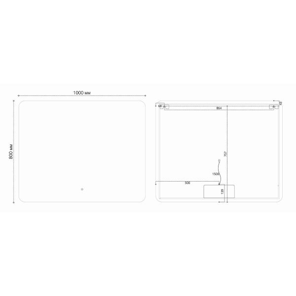 Зеркало Vincea LED VLM-3BE100 1000×800 c сенсорным выключателем и диммером